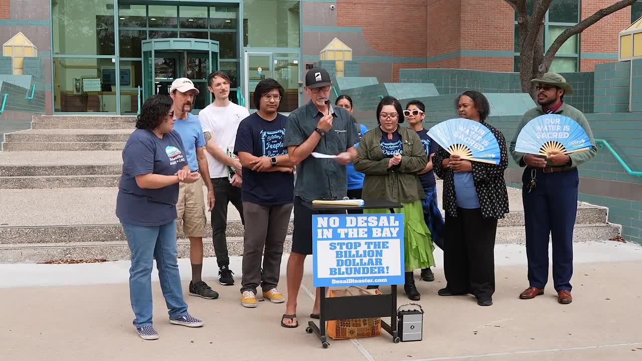 CORPUS CHRISTI, Texas — Community members gathered outside Corpus Christi City Hall, on Tuesday, voicing concerns over the $1.2 billion Inner Harbor Desalination Plant and its potential environmental and community impacts.