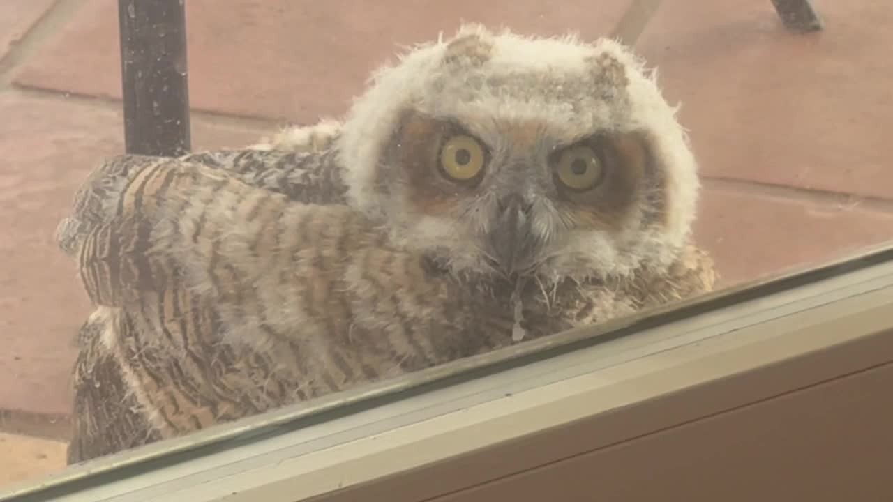 A few hours later, another baby owl appeared on the back patio.