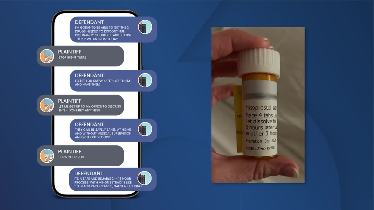 The plaintiff claimed the defendant received the pills under his name and he consistently tried to get her to take Mifepristone and Misoprostol, calling them M&M's for short in their text messages.