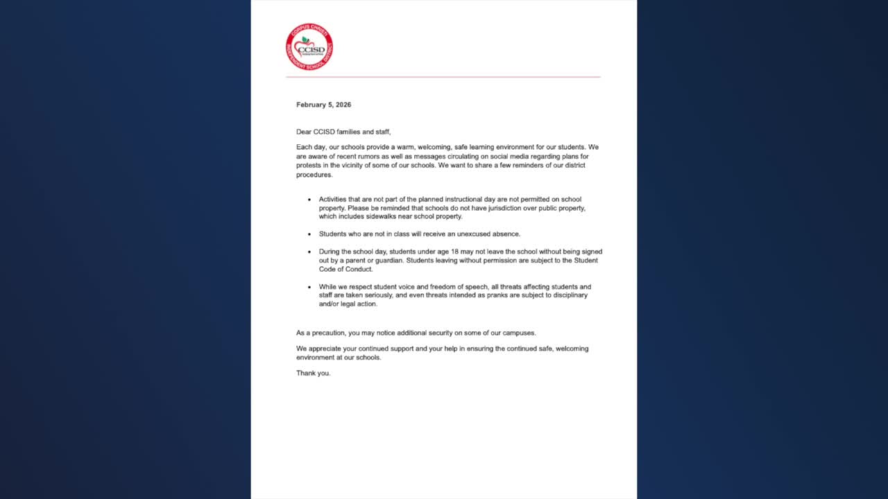 In a statement to KRIS 6, CCISD said students who walked out are subject to the student code of conduct. According to the district's code of conduct, students will receive an unexcused absence if they are not in class. The code also states that students who walk out without permission can face warnings, detention, loss of privileges, or even suspension.