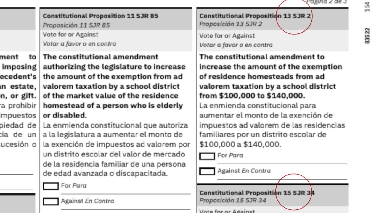 In a statement, Nueces County Clerk Kara Sands acknowledged that Propositions 14 and 15 are out of numerical order, however they are the correct proposition language and votes will be counted and tabulated accurately.