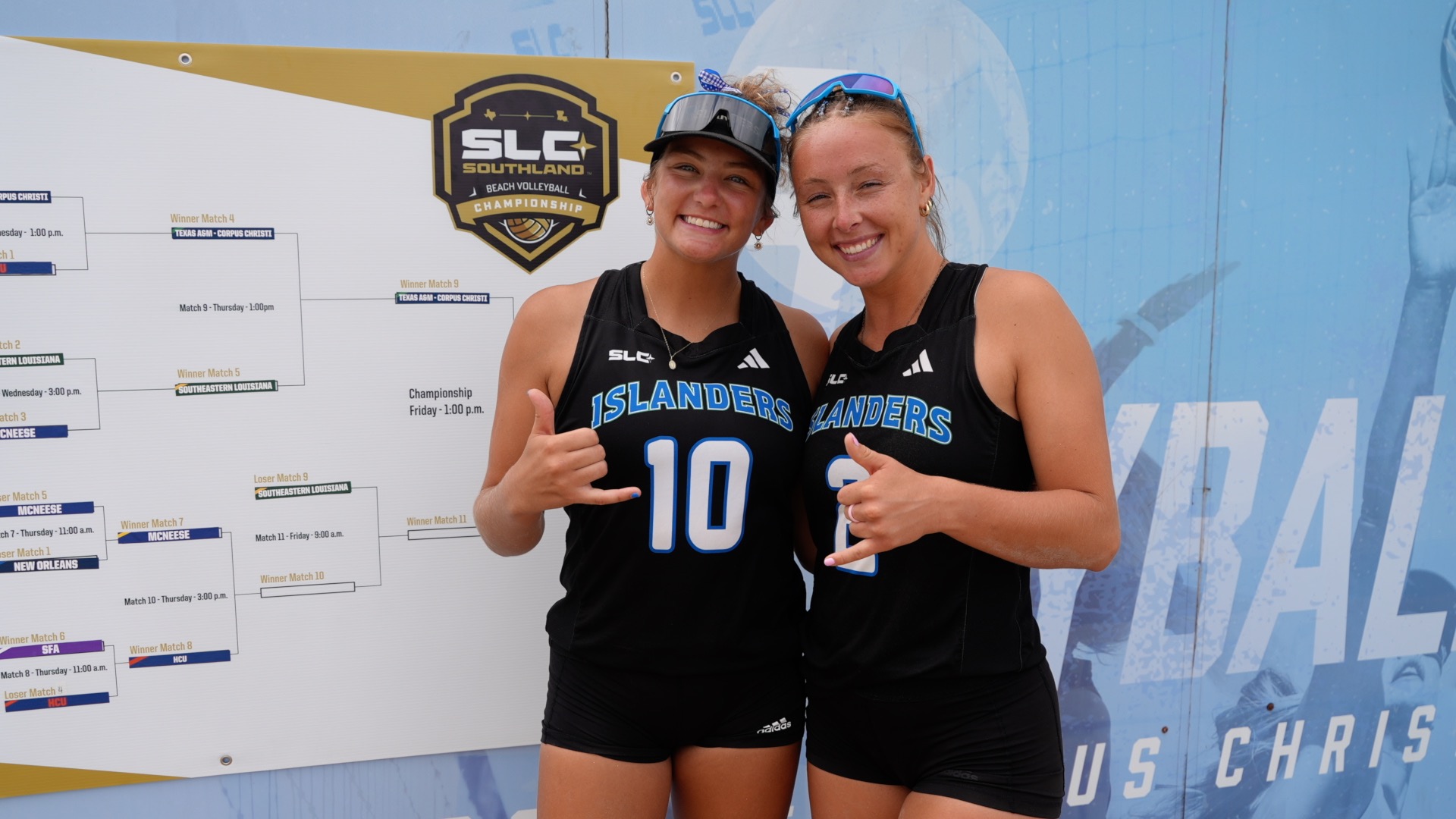 CORPUS CHRISTI, Texas — The Texas A&M-Corpus Christi beach volleyball team continued its dominant run at the No.1 seed on home sand Thursday, sweeping No. 2 Southeastern 3-0 in the Southland Conference tournament winner's bracket semifinal at Water's Edge Park.