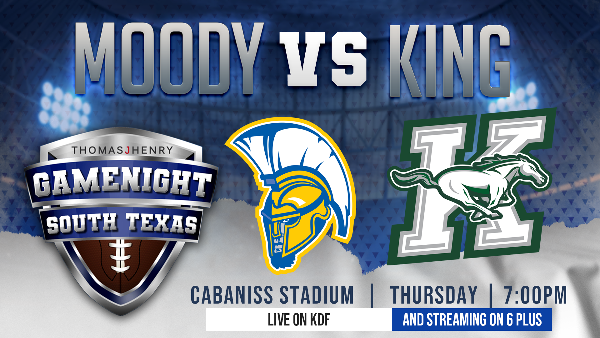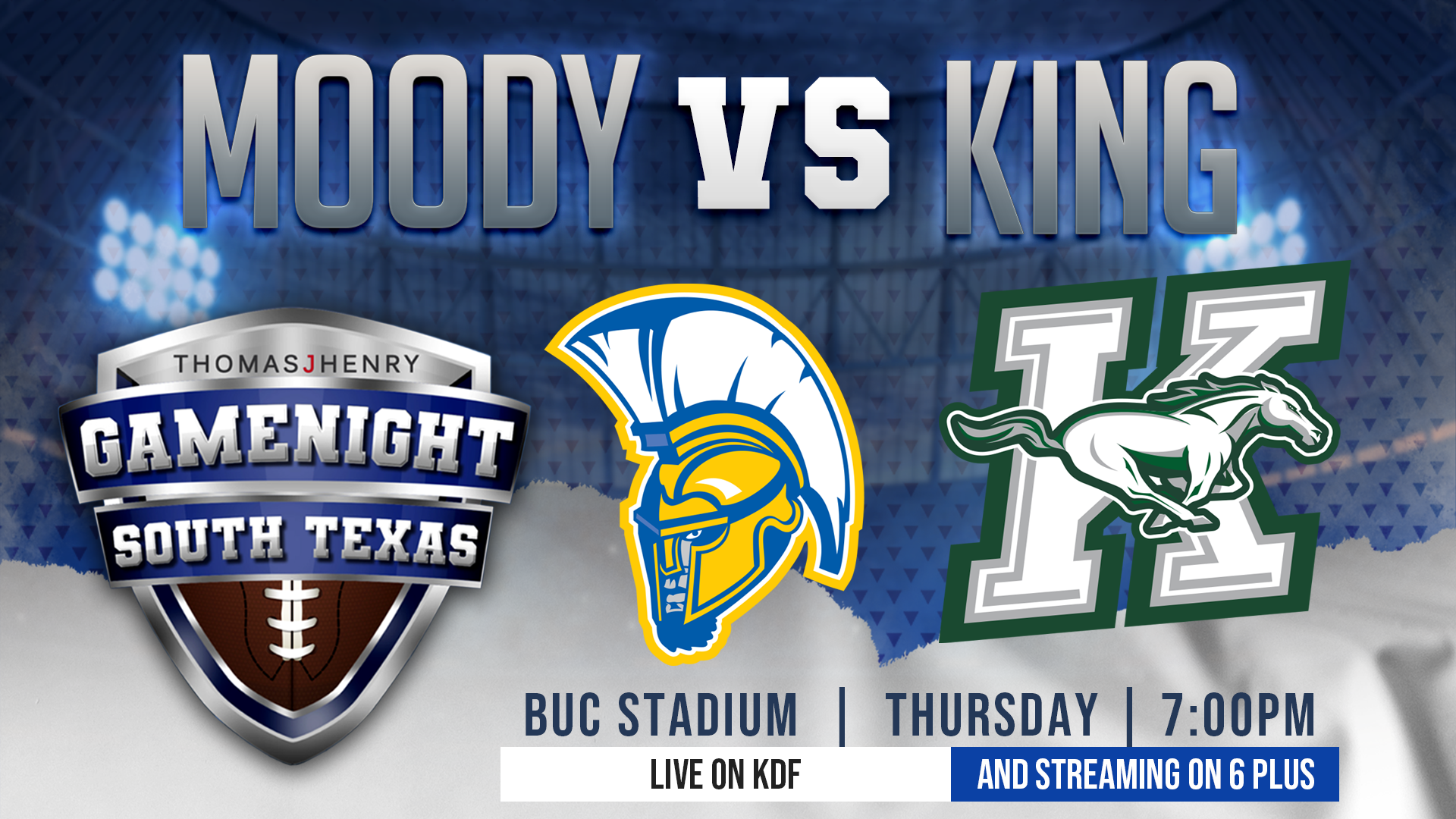 King and Moody kickoff our Game Night South Texas TV matchup on Thursday at 7:05 p.m. at Cabaniss Stadium. You can watch the game live on our sister station KDF, on our website and on our YouTube KRIS 6+.