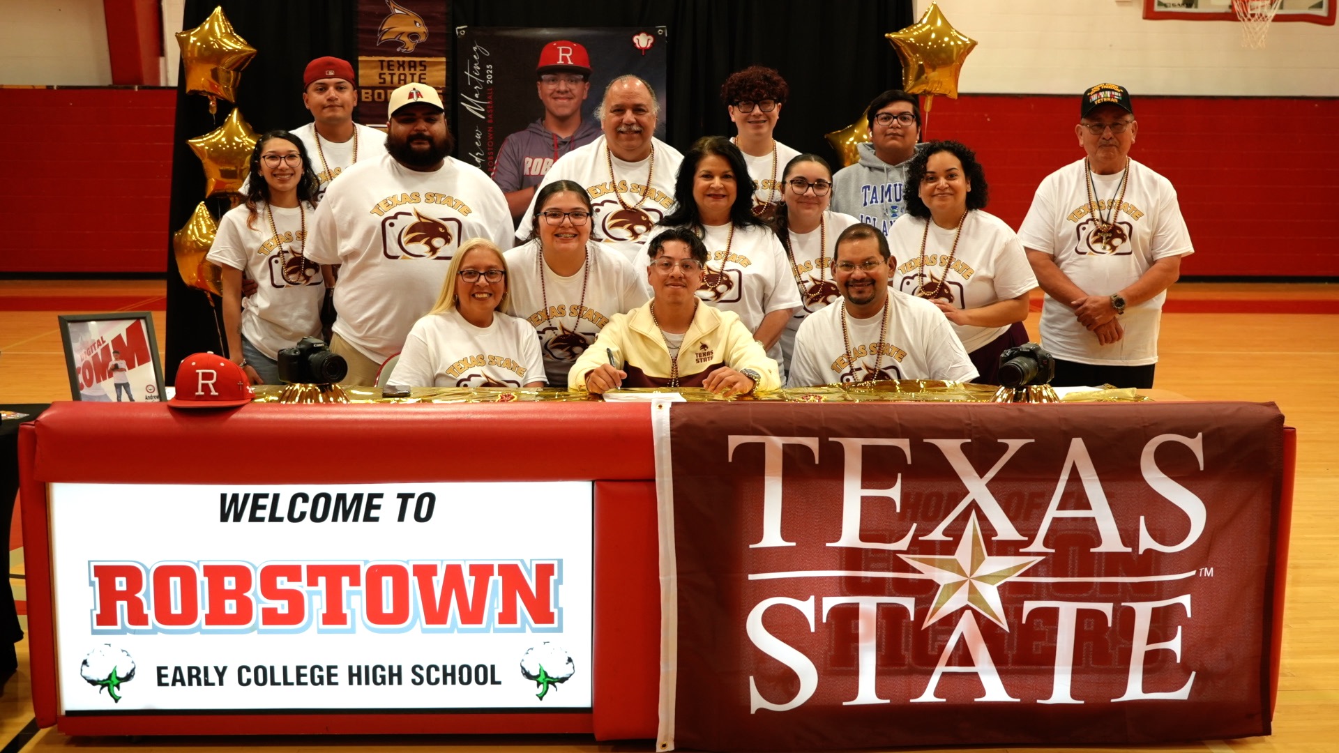 ROBSTOWN, Texas — Robstown high school celebrated a unique college signing day for Andrew Martinez. The senior is going to Texas State to help Bobcat athletics in the media department. After two years, Martinez became the first Robstown student to earn a certificate in broadcast journalism.