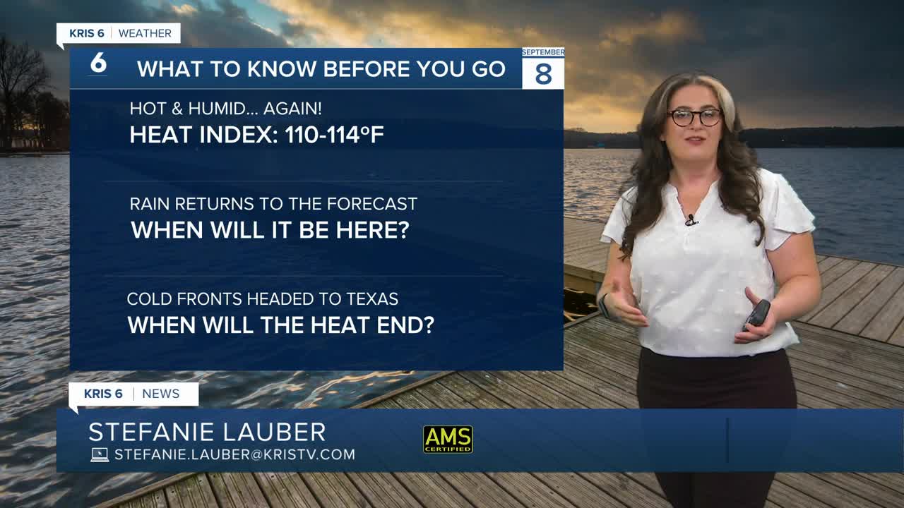 Another hot weekend is on the menu for us! Today, 'feels like' temps will soar in the 110-114ºF range for a period of two hours or longer. Heat Advisories will be in effect from noon to 6 p.m. We'll likely see a few more heat alerts before Fall really arrives, but changes are on the way!