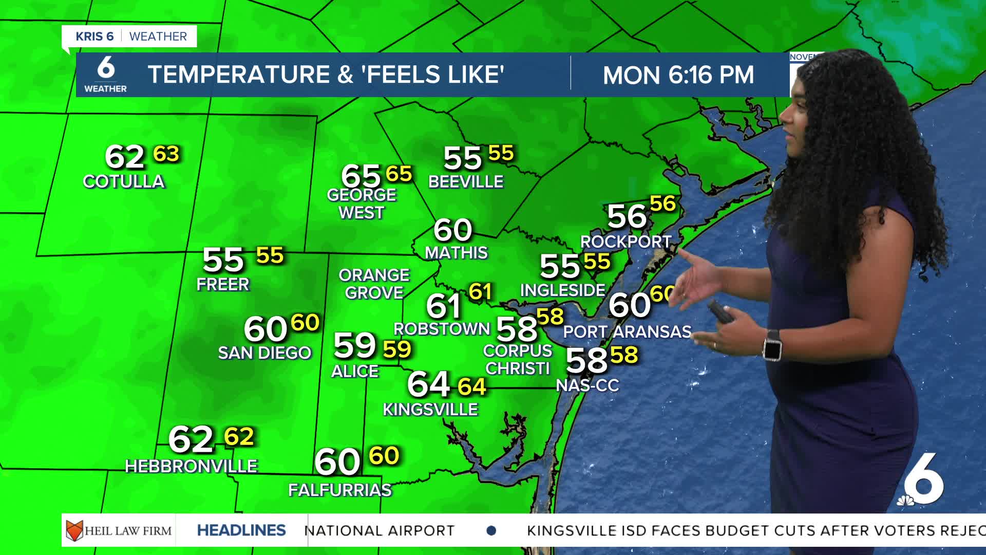 CORPUS CHRISTI, Tx — Good Evening, Coastal Bend! Expect temperatures to drop tonight headed into Tuesday morning.