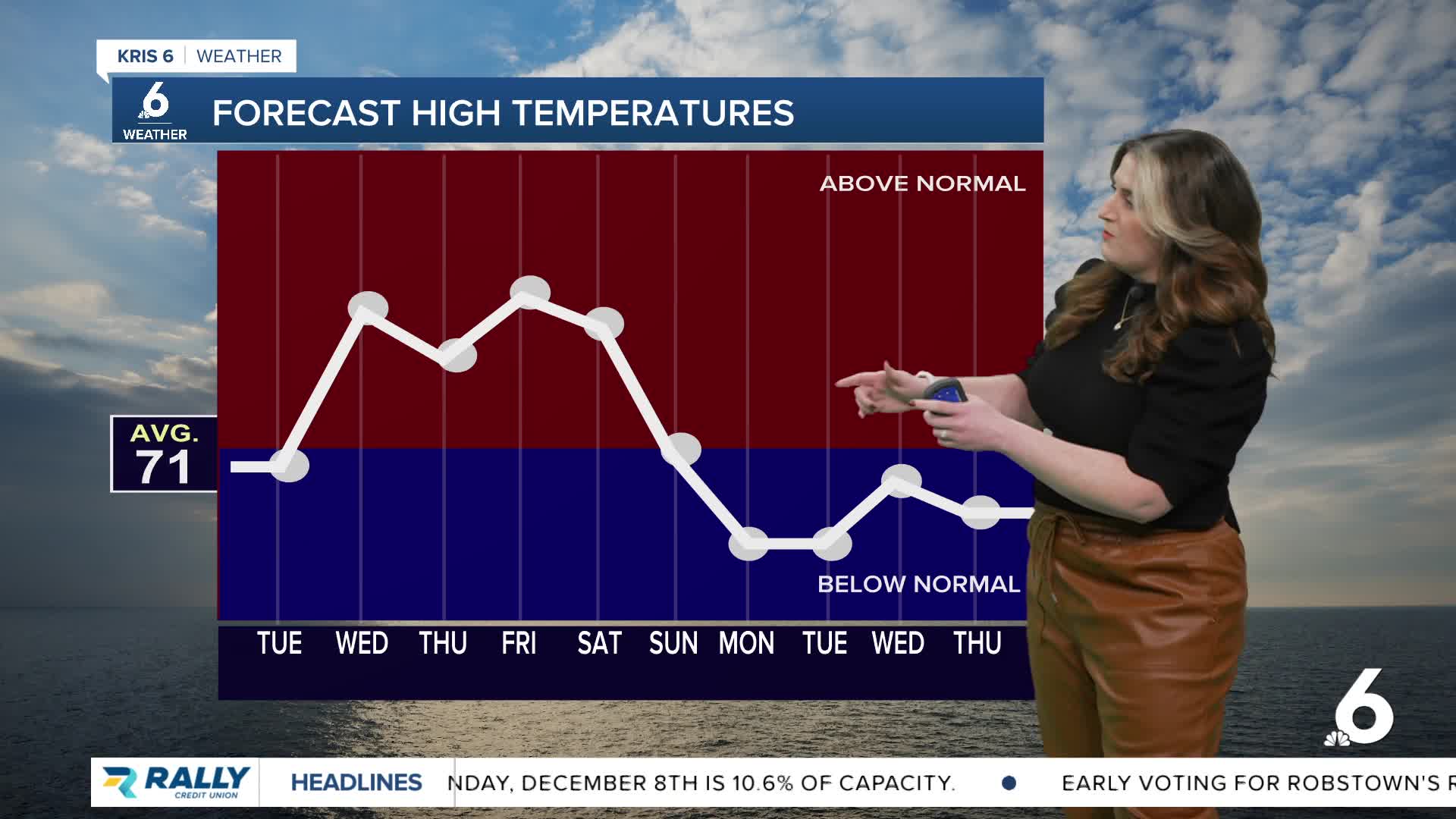 Despite a chilly Monday, temps will rebound quickly across the Coastal Bend