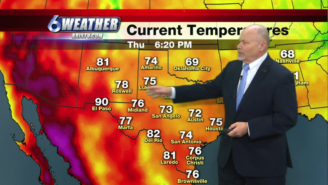 CORPUS CHRISTI, Texas — Skies will remain mostly cloudy with near to slightly below normal temperatures through Friday, but the combination of abundant returning Gulf moisture and a series of upper level disturbances poses the threat of strong thunderstorms and heavy weekend rainfall.