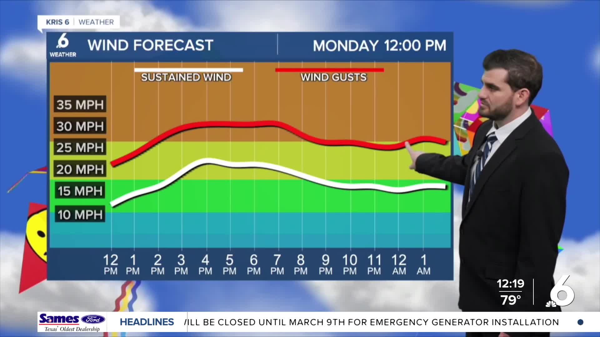Winds: SE 15-25 mph, G 25-35 mph