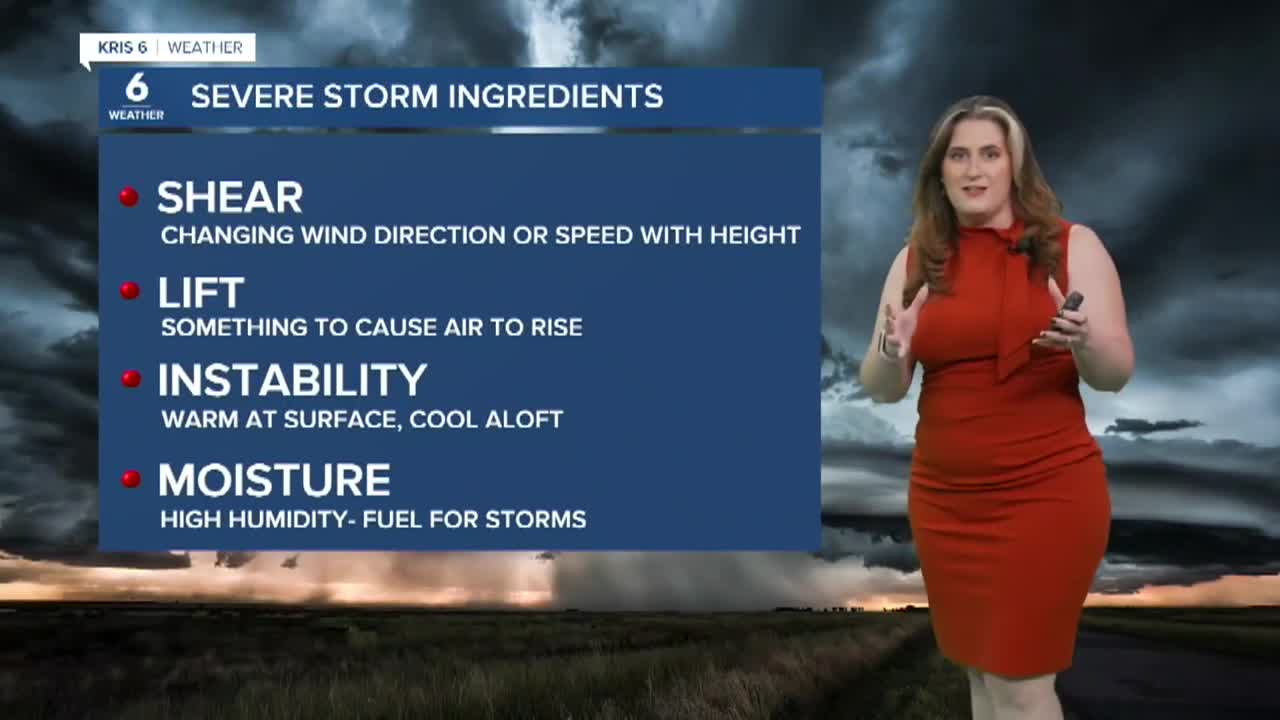 There are different types of thunderstorms; supercells are fairly rare in the Coastal Bend, but have occurred many times in the past. Supercell thunderstorms are more frequent in the Plains and the northern half of Texas. In general, severe thunderstorms require four main ingredients: shear, lift, instability, and moisture.