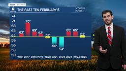 For the most part, we have seen slightly above average Februaries over the past 10 years in Corpus Christi. The hottest in recent memory was back in 2017, coming in at a whopping 70°F for the monthly average! On the other end of the spectrum, the coldest was back in 2022 at 54°F. Perhaps most surprisingly, even the February of 2021 with the Great Texas Freeze came in around 56°F. This demonstrates how a few days of extreme, historic cold were offset by relatively mild temperatures for the rest of that month.