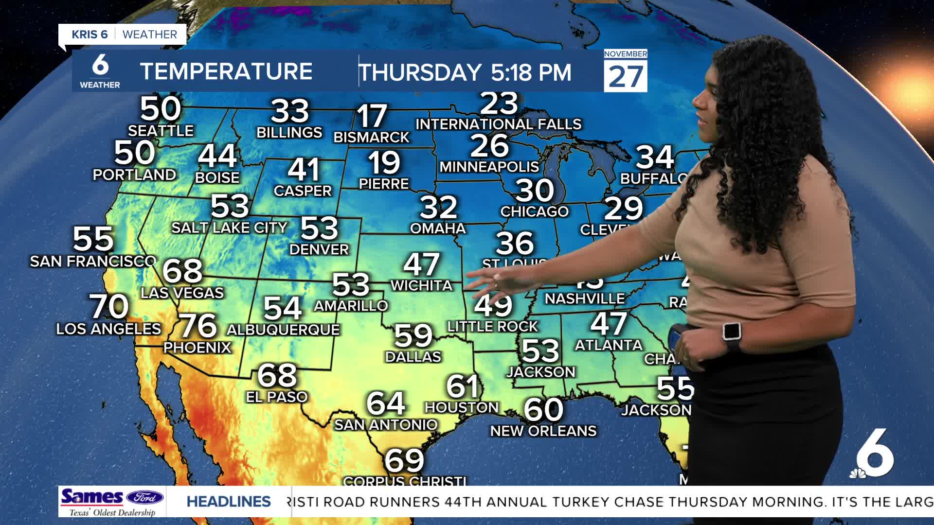 CORPUS CHRISTI, Tx — Happy Thanksgiving, Coastal Bend! We are enjoying some near-seasonal temperatures for the holidays!