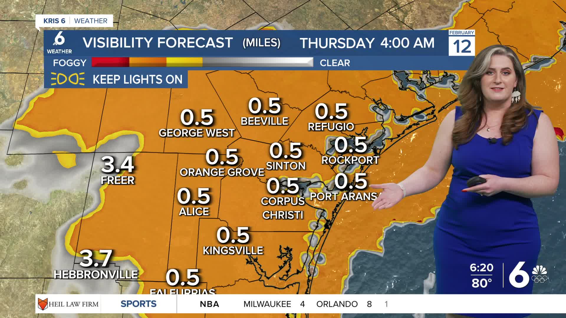 The 'air-you-can-wear' feeling and fog will be most noticeable across the Coastal Bend heading into Thursday morning. Fog will be more widespread overnight, impacting your morning commute on Thursday. It's best to give yourself some extra time to head out the door! Visibility will improve substantially by mid-morning, but fog over the water might take longer to clear. Expect Thursday afternoon to be mostly sunny and muggy. Highs will return to the low 80s with an onshore breeze.
