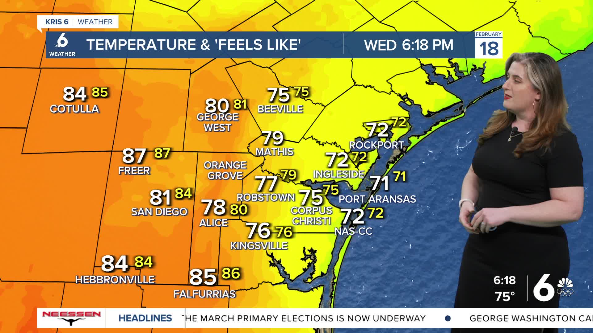 The 'air-you-can-wear' feeling is nothing new across the Coastal Bend. We've been feeling like spring for much of February. Tonight and heading into Thursday morning, you should expect patchy fog and slightly reduced on your morning commute. It's best to give yourself some extra time to head out the door! Visibility will improve substantially after daybreak, but fog over the water might take longer to clear. Expect Thursday afternoon to bring more 'filtered sunshine' before the clouds decrease. Highs will return to the low to middle 80s with an onshore breeze and muggy conditions.