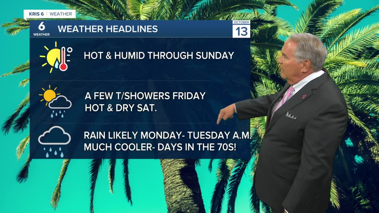 Friday expect only isolated thundershowers otherwise lots of sunshine hot and humid with generally light winds and a high of 91.
