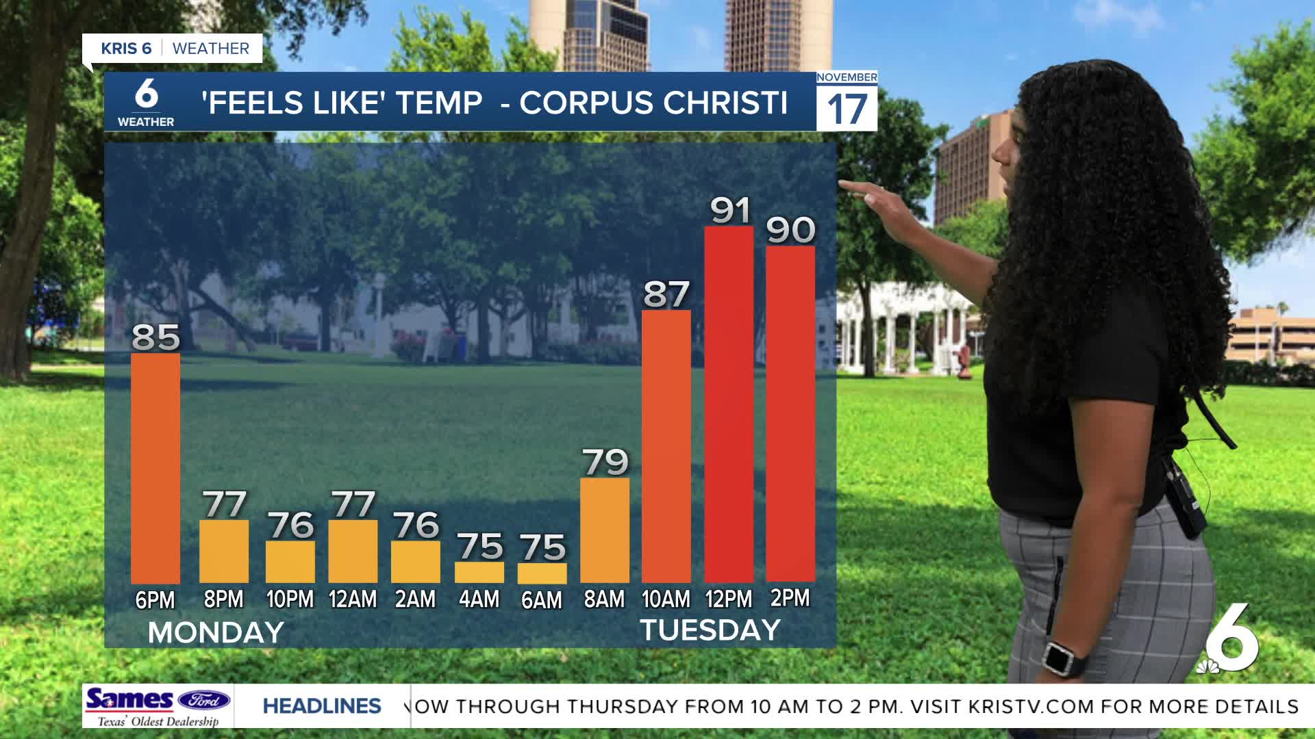 You can expect some warm temperatures throughout this week, highs in the upper 80s and low 90s across our neighborhoods. Corpus Christi hit a high of 89ºF this afternoon. Luckily, some gusty winds have helped us not feel as warm.