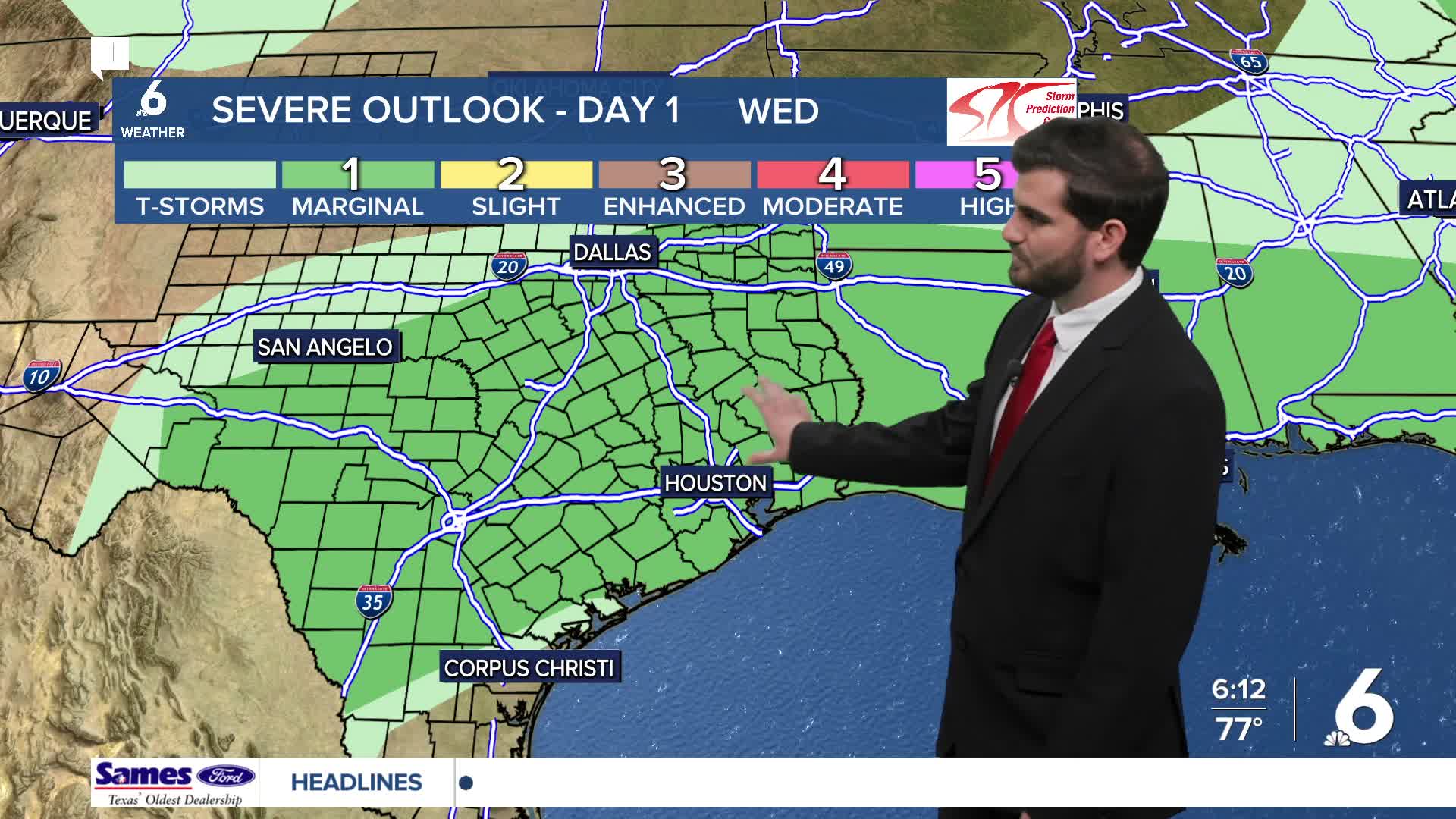 - Level 1/5 risk of severe weather for Live Oak, Bee, and northern Duval/Refugio counties tonight