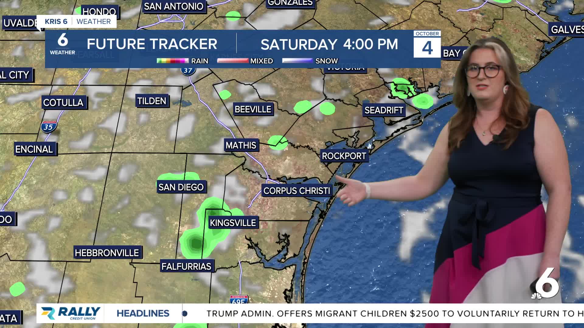 Prepare for a humid weekend in the Coastal Bend. Near-average temps will feel hotter because of the muggy air in place. It's helping for to keep rain in our forecast— from now through the next week! With tonight's spotty showers tapering off, patches of fog will develop inland during the pre-dawn hours. A few isolated showers are expected near the coast around daybreak. The afternoon sea breeze is also likely to spark afternoon showers. We face a substantial rainfall deficit nearing nine inches, which accounts for about 30 percent of our yearly rainfall, so we'll take what we can get!