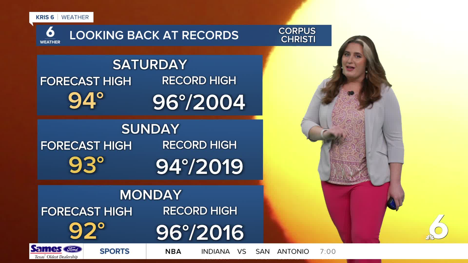 The warm-up continues across the Coastal Bend, with afternoon highs nearing records! A few showers may sweep by our coastal neighborhoods Saturday morning, but don't count on meaningful rainfall to help fight our drought. Even with a cold front moving through the Coastal Bend on Sunday, a good drink of rain and 'fall feels' are no where to be found in South Texas. This front will drop humidity a bit (especially over the Brush Country), but the hot temps will continue unchanged. A second front will near the Coastal Bend on Wednesday, but new guidance suggests it may retreat towards the north before it gets to make much change in our weather. It's too early to know for sure, but a third cold front could be arriving by next weekend — hopefully with a cool-down. I'll keep an eye on the forecast! Stay hydrated and stay cool!