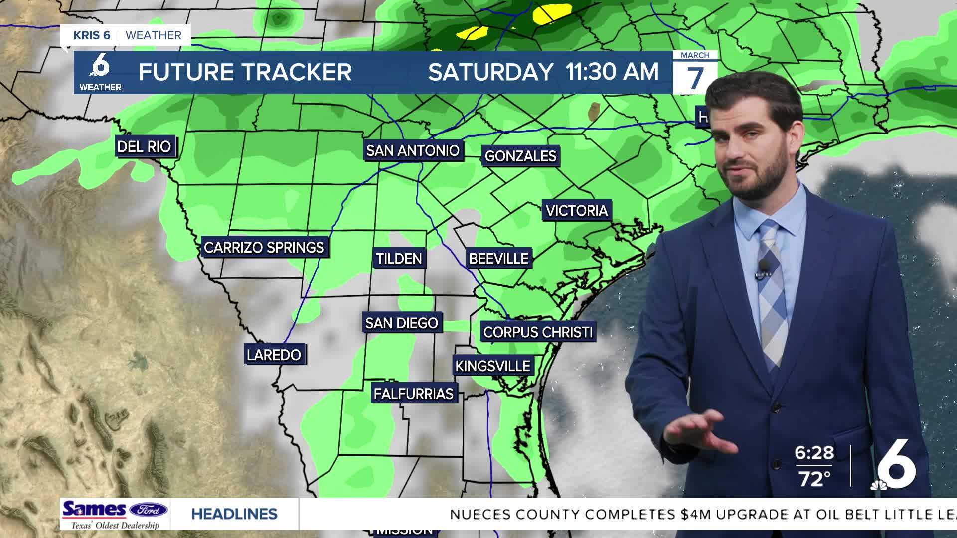 As we get ready to close out the first week of March we'll hold on to warm and windy conditions today and tomorrow. Both days will likely have gusts in the 30-40mph range here in Corpus Christi and even some of the stronger winds pushing into Saturday. Daytime highs should top out in the mid 80s for most of us and overnight lows in the upper 60s/lower 70s. Tomorrow morning could see some drizzle or even a light shower, but won't amount to much in terms of totals.